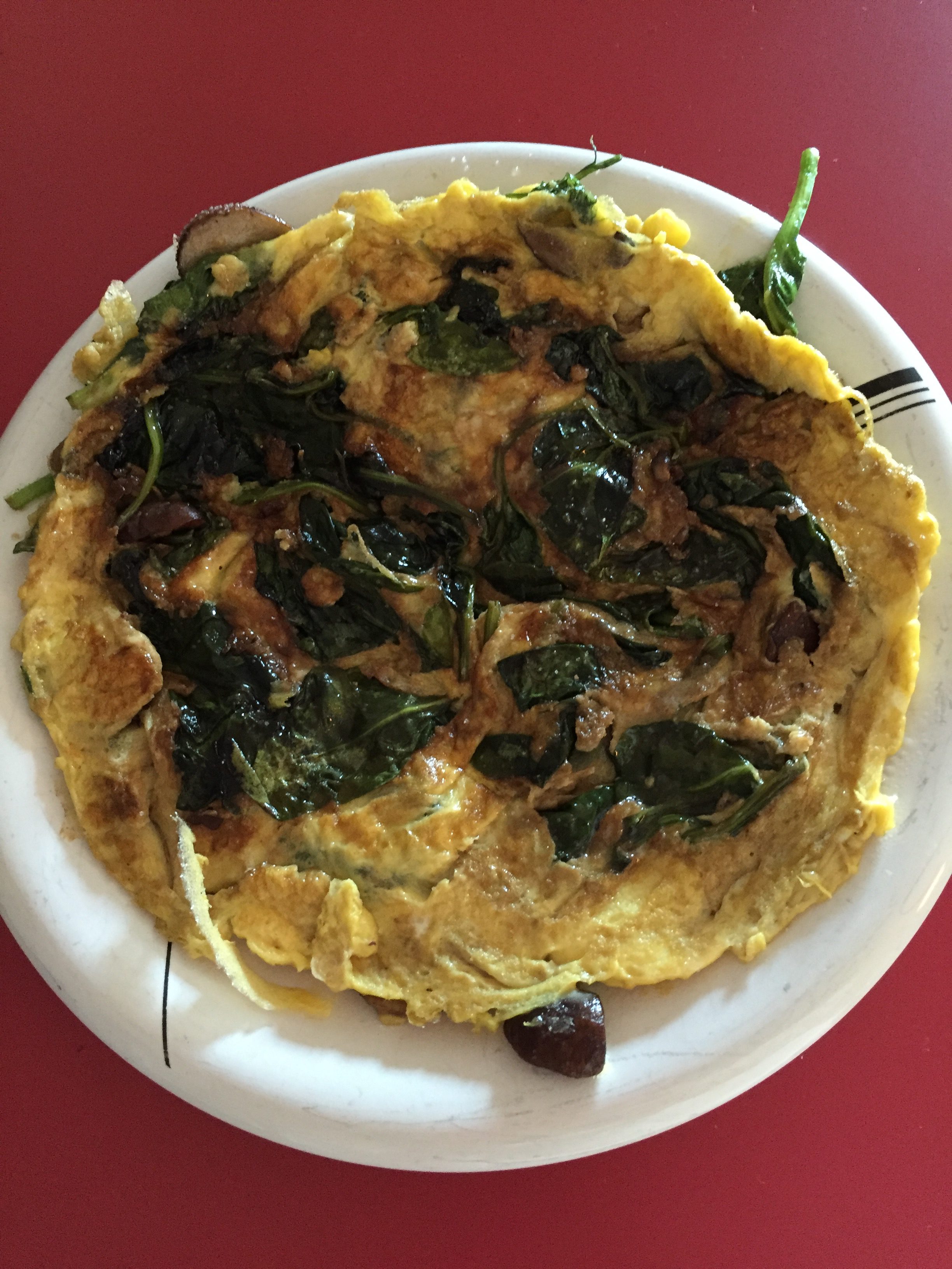 One of my favorite light lunches, is a simple omelet. This adds up to just over 200 calories, and I find eggs seem to keep me energized and full longer than a high carb lunch. I made this one by sauteeing about a cup and a half of fresh spinach and a few sliced mushrooms in a tsp of olive oil and a tsp of butter. I beat two eggs with a spring of fresh dill and once the veggies were cooked, I just poured the eggs over, pushed the sides in, then once the egg was set, flipped it over and cooked for another minute or two. A drizzle of balsamic vinegar for added flavor and dash of salt and pepper, and it was delicious.