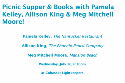Join Buttonwood Books for a Picnic Supper & Books at 6:30pm Wednesday, July 16, at Cohasset Lightkeepers as a trio of insightful authors introduce their newest titles and the party experts at Fresh Feast serve a delicious picnic supper and libations! Reservations are required. Purchase your $35 ticket online below, or call the store at (781) 383-2665.